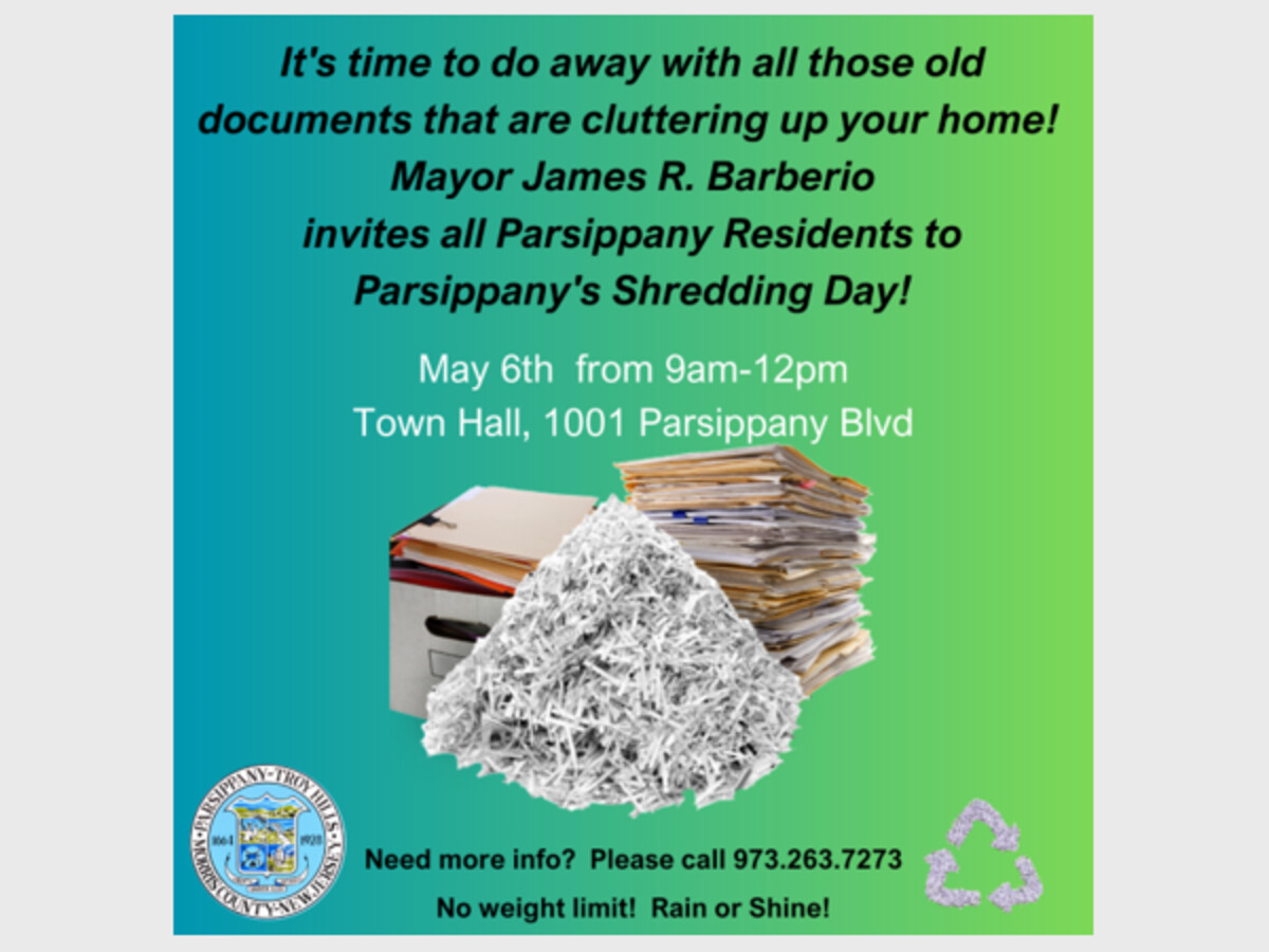 Mayor James R. Barberio invites all Parsippany Residents to Parsippany's Shredding Day!