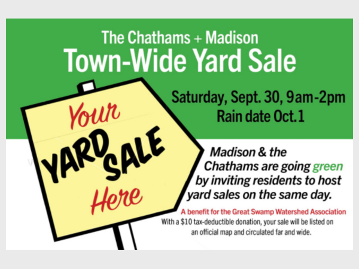 One person’s trash is another person’s treasure. Now is the time to start checking your closets, basement, and garage for those hidden treasures and prepare to host a yard sale at the at this community event. Scroll to the bottom of this page and register to have your address and a list of your items for sale to appear on a digital, printable map. The map will be linked to this page and publicized far and wide to potential shoppers. You must be a resident of Chatham Township, Chatham Borough or Madison to list your sale.