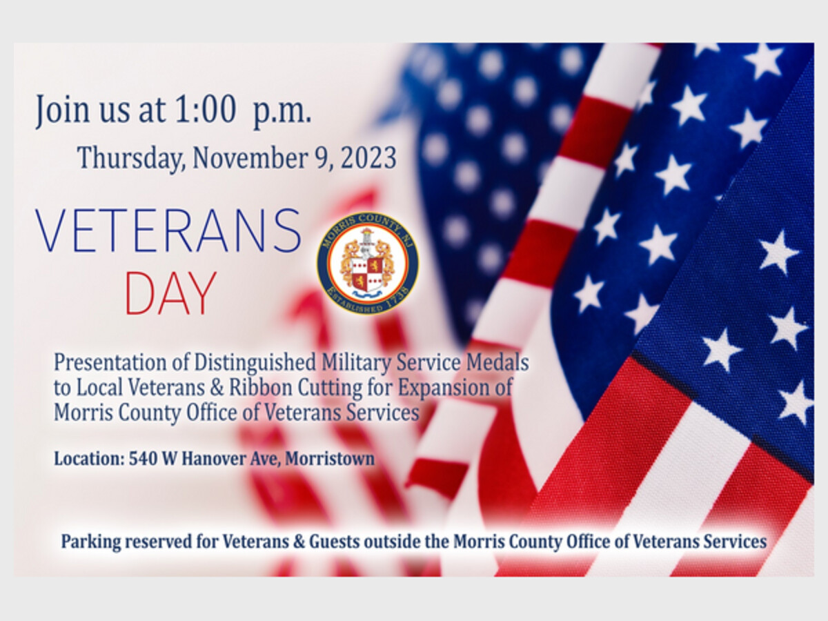Public parking for these events will be arranged across the street at the Morris County 9/11 Memorial. Veterans receiving medals will have designated parking at the Veterans Services Office.