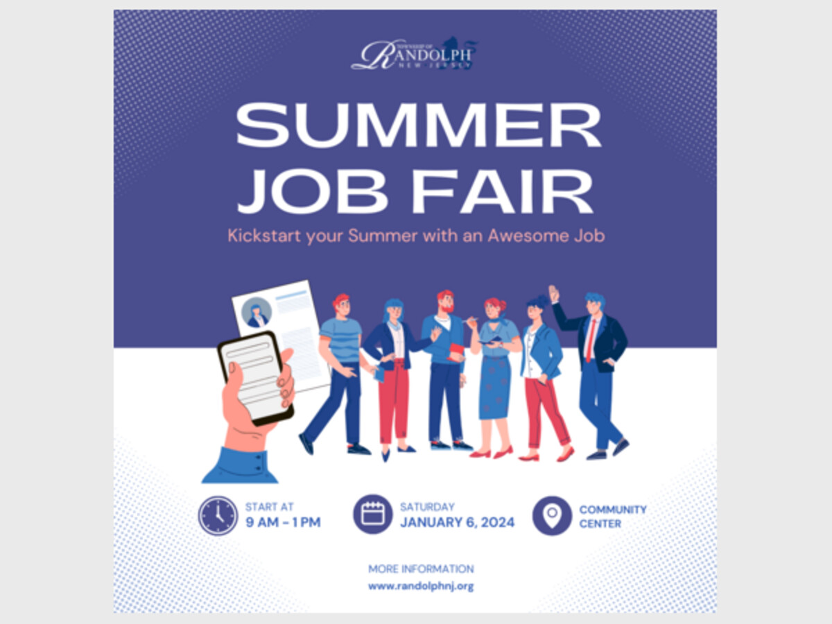 The job fair will offer opportunities in a variety of departments. To receive an application in advance, email Steve Eisenstein at seisenstein@randolphnj.org or you can contact the Recreation Office at 973-989-7081.