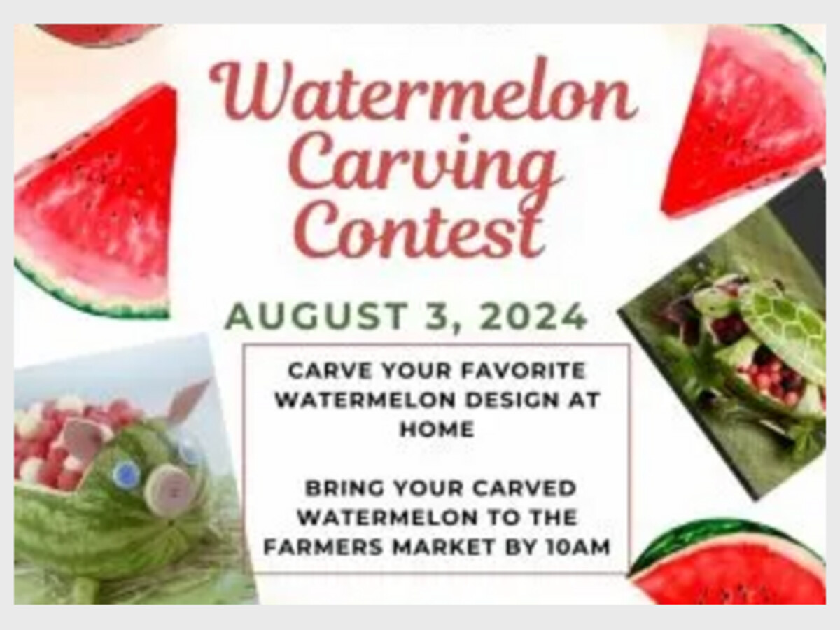 Carve your favorite watermelon design at home; bring your carved watermelon to the farmers market by 10am!