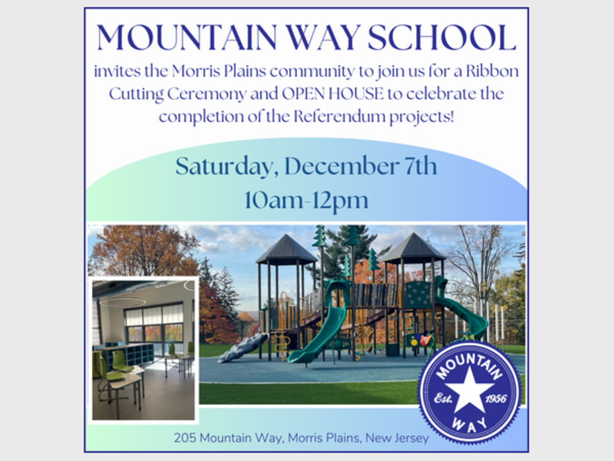 Mountain Way School invites the Morris Plains community to join us for a ribbon-cutting ceremony and open house to celebrate the completion of the referendum projects!