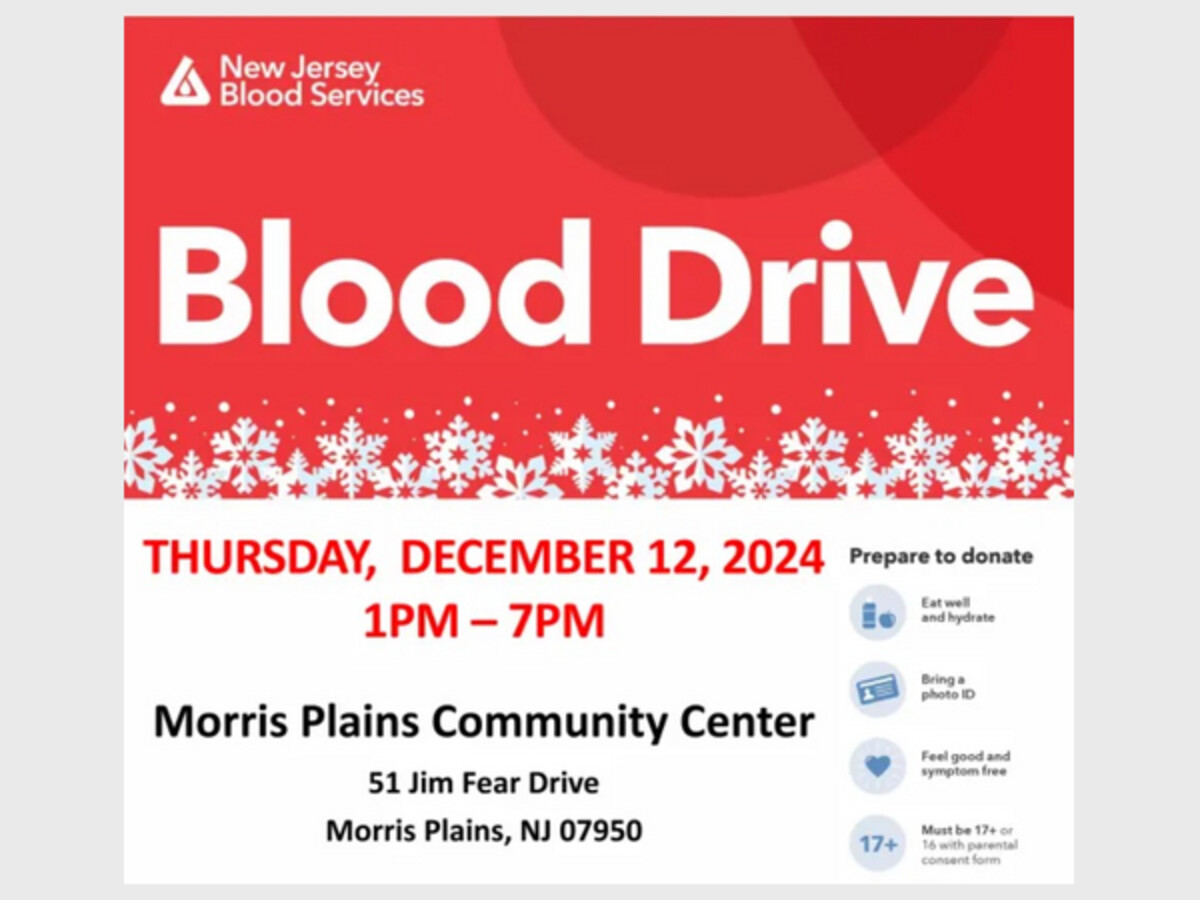 Blood Drive Thursday, 12/12, at the Morris Plains Community Center