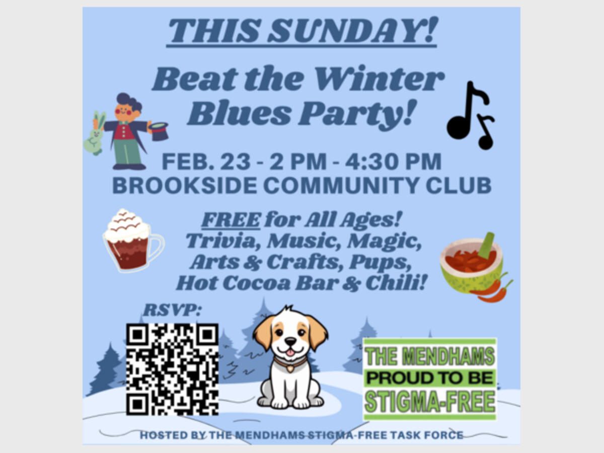 Beat the Winter Blues Party! - Shake off the cold and snow at the second annual "Beat the Winter Blues Party" this Sunday, February 23, from 2:00 p.m. - 4:30 p.m., at the Brookside Community Club, 1 East Main Street.