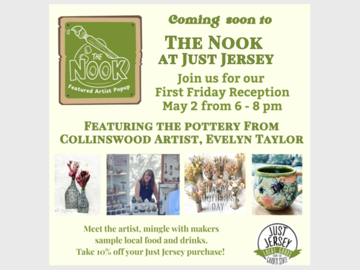 Join us for our first Friday reception featuring Collinswood artist, Evelyn Taylor. Meet the artist, sample local food and drinks and take 10% off any product.