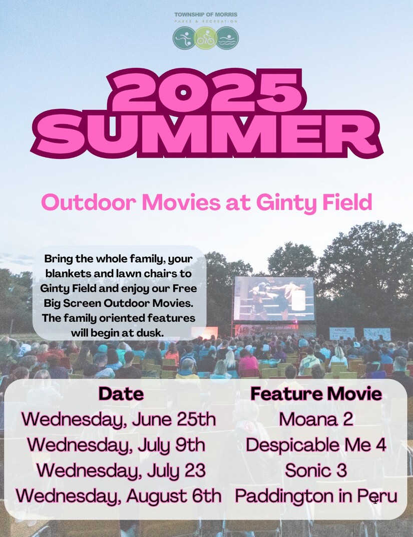 Bring the whole family, your balnkets and lawn chairs to Ginty Field and enjoy a free big screen outdoor movie. The family oriented movie will beign at dusk.