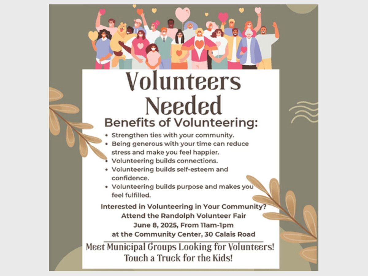 Looking to make a difference in your community? The Township of Randolph invites residents to attend our upcoming Volunteer Fair on Saturday, June 8, 2025, from 11:00 am to 1:00 pm at the Randolph Community Center, 30 Calais Road.