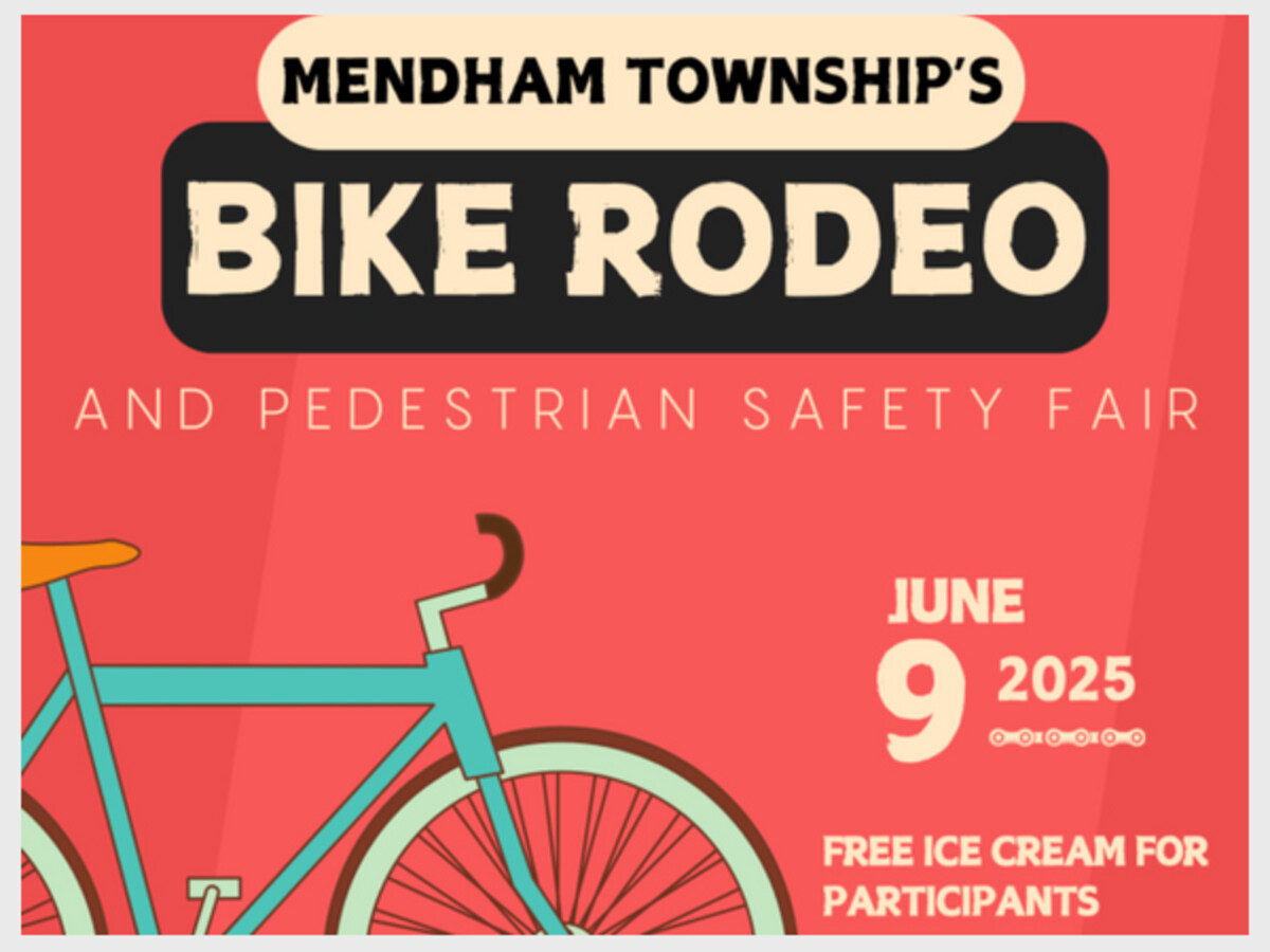 Mendham Township Recreation in collaboration with Avenues in Motion will host a Bike Rodeo and Safety Fair on Monday, June 9 at 4:30 p.m. Representatives from Avenues in Motion will be here to inspect children's bicycles and helmets. Riders can enjoy an obstacle course and visit stations that will highlight bicycle skills and safety scenarios. This event will take place in the parking lot of Mendham Township Elementary School (18 West Main Street). The beach will be open for ice cream and swimming afterwards.