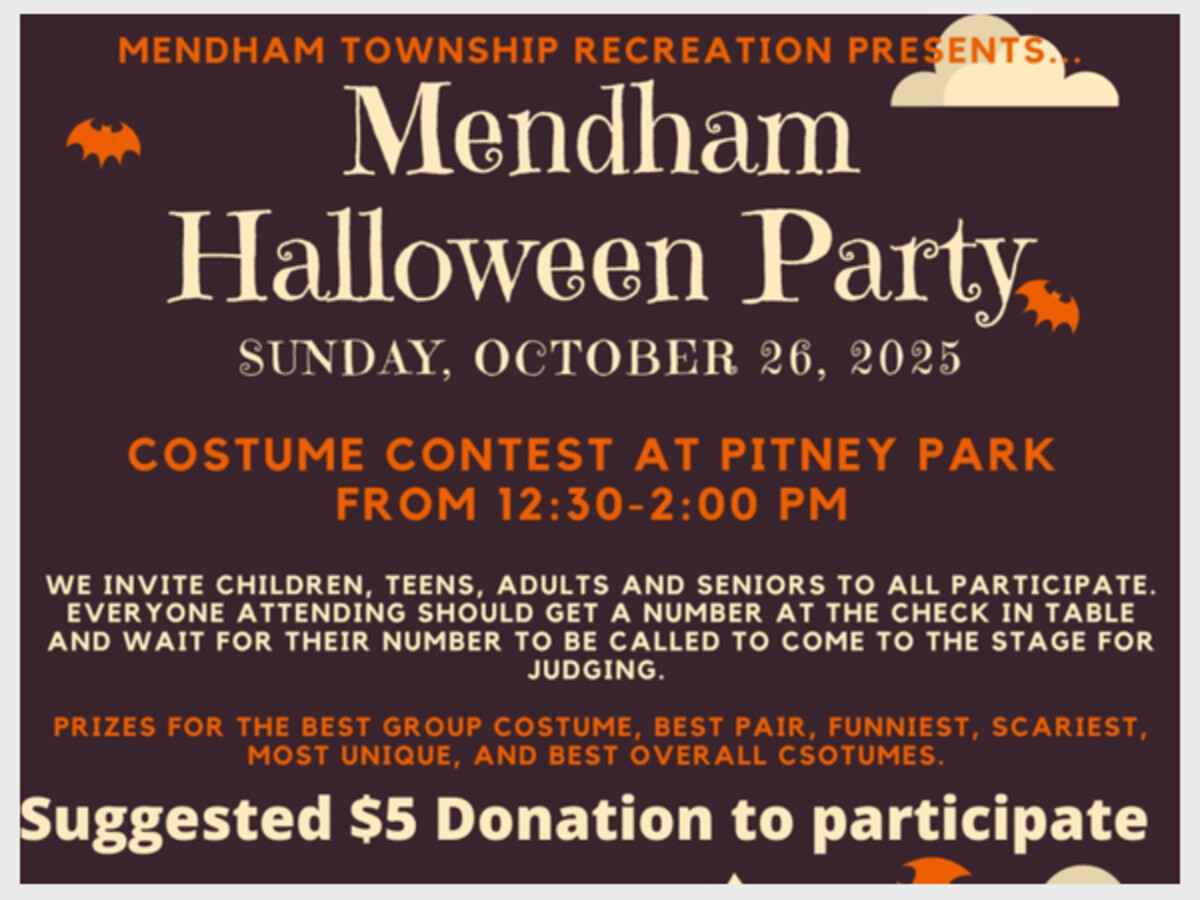Come on out for Mendham Township's Halloween Party and Costume Contest!