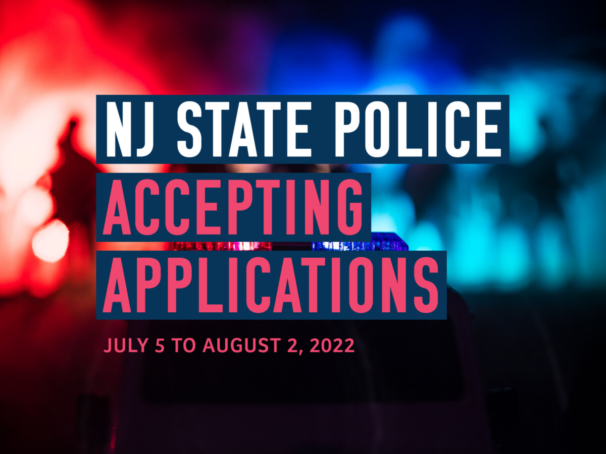 Colonel Patrick J. Callahan announced the opening of the New Jersey State Police application process for the position of State Trooper. Applications will be accepted online from Tuesday, July 5, 2022, to Sunday, August 2, 2022.