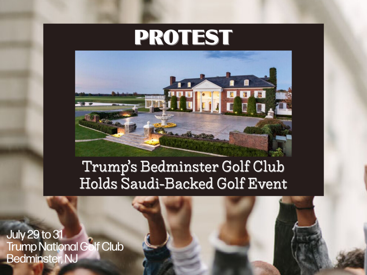 The Trump National Golf Club in Bedminster is the next site for a planned series of Saudi Arabian-funded golf tournaments. Eagleson’s group plans to call attention to the Saudi government’s connection to the 9/11 terrorist attacks and call out the 48-person roster of pro-golfers for “choosing to take Saudi payouts and look the other way on the country’s human rights abuses and role in the worst terrorist attacks on American soil.”