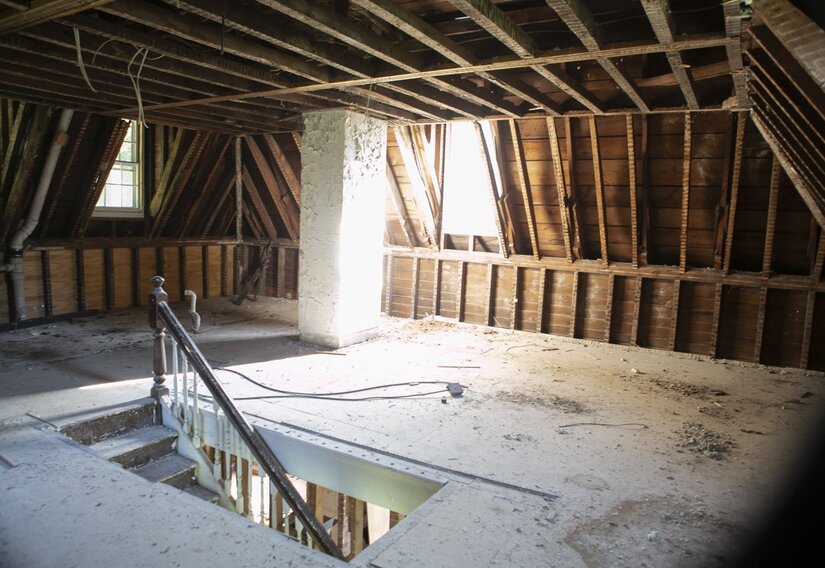 The Loyola Gatehouse. The grant agreement involves only exterior preservation work. However, the photographs demonstrate the deceiving nature of the historic building, which is much more expansive inside than the exterior construction lets on.