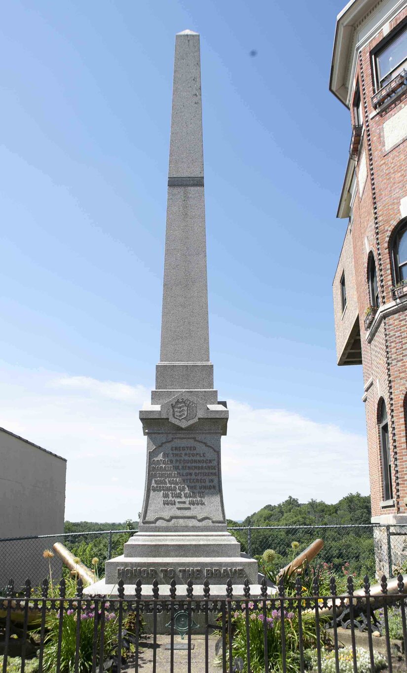 Known as the Soldier’s Monument, the granite obelisk with four brass cannons on the monument base is certified eligible as contributing to the Boonton Main Street Historical District.