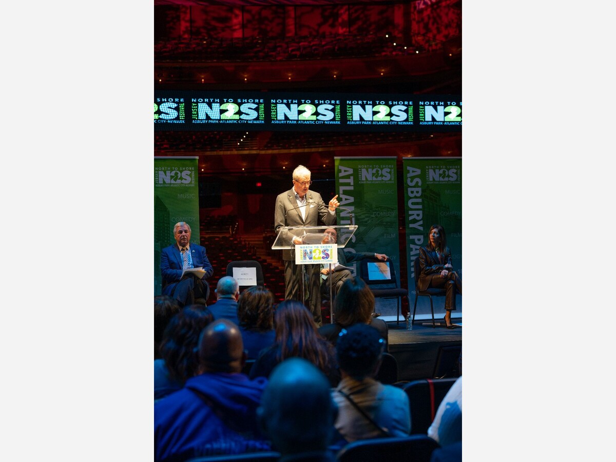 Governor Phil Murphy and First Lady Tammy Murphy took the stage at NJPAC’s Prudential Hall this morning (Monday, March 13, 2023) alongside NJPAC President and CEO John Schreiber, Newark Mayor Ras J. Baraka, Asbury Park Mayor John Moor, and Atlantic City Mayor Marty Small to announce the North to Shore Festival, an extraordinary three-city celebration of arts and technology kicking off on June 7.