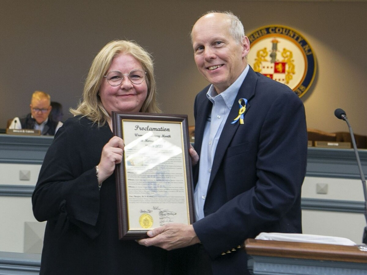 Tim Cutler, who accepted the Morris County “2023 Seeds of Change Award" on Alice Cutler’s behalf with Advisory Committee on Women members Sydney Ugalde, Vice-Chair Joanne Bjornson and Pam Bennett-Santoro.During the meeting, Commissioner Director John Krickus presented a framed proclamation to Joann Bjornson, Vice Chair of the Advisory Committee on Women, declaring March 2023 as Women's History Month in Morris County. The board officially adopted the proclamation on March 8.