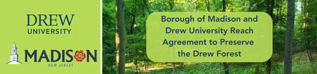 Madison, NJ — The Borough of Madison and Drew University have signed a term sheet to preserve Drew Forest, marking a significant achievement in local environmental conservation. This agreement enables Madison to acquire the 51-acre Drew Forest for permanent preservation while allowing Drew to develop other university land for multi-family, inclusionary housing. As part of the acquisition, the Borough will also obtain a portion of land along Madison Avenue, including the Madison House.