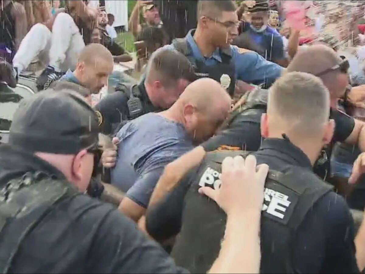 On July 2, 2021, residents again contacted MLPD after Mathews was recorded using profane and racist language toward neighbors. Although he was charged with bias intimidation and harassment, procedural delays precluded an immediate arrest. In the following days, Mathews's conduct intensified, culminating in his arrest on July 5, 2021, amid large-scale protests. He was charged with 22 offenses linked to six separate incidents. Mathews later pleaded guilty to four counts of bias intimidation and received an eight-year prison sentence in December 2023.