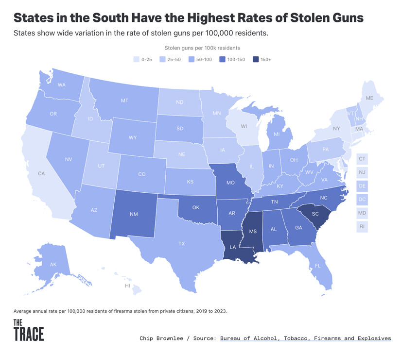 Firearms stolen from private citizens account for nearly 95 percent of all guns stolen in thefts, according to a 2025 ATF report. From 2019 to 2023, nearly 1.1 million firearms were reported stolen, and more than 1 million of those were stolen from private citizens, or roughly 200,000 annually.