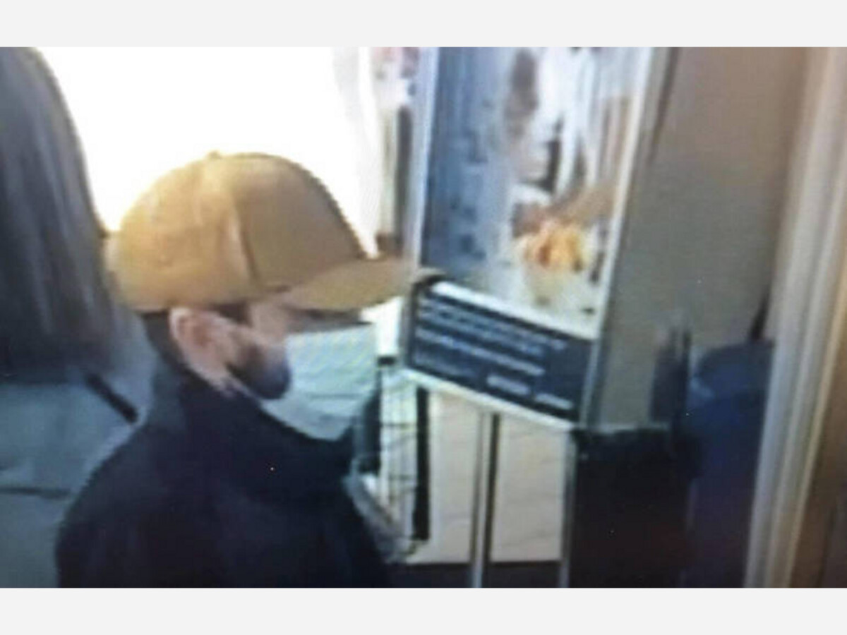 Police are searching for a suspect that robbed the PNC Bank within Stop & Shop on Route 36 in Keyport, New Jersey, Saturday, November 13th at approximately 1:00 PM. Bank security footage shows a white male in a gold baseball cap and a light blue medical mask with a beard and short, dark hair entering the PNC Bank and leaving with stolen cash. It is unclear if the suspect had a weapon, as one was not witnessed by employees or security footage. The suspect is still at large.