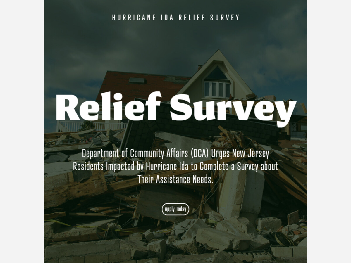 The Department will use the feedback from the survey to help the State better understand the needs of residents still recovering from Hurricane Ida and to better prepare for future storms and flooding hazards.