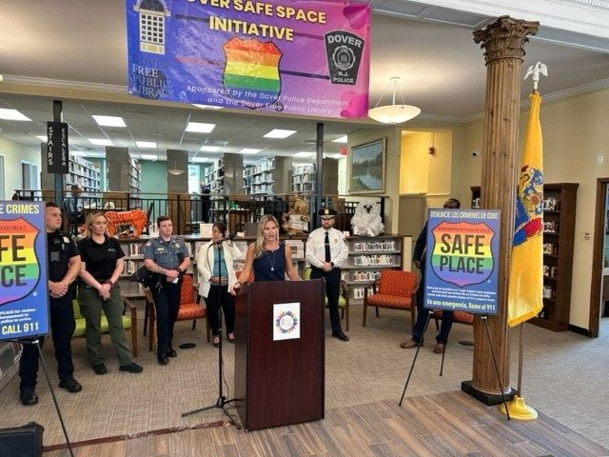 On Thursday, June 1, Supervising Assistant Prosecutor Samantha DeNegri, Sergeant Patrick LaGuerre, Detective Supervisor Stephanie Merced, and Detective Nicole Mercuro collaborated with the Dover Police Department to launch the Safe Space Initiative at the Dover Public Library.
