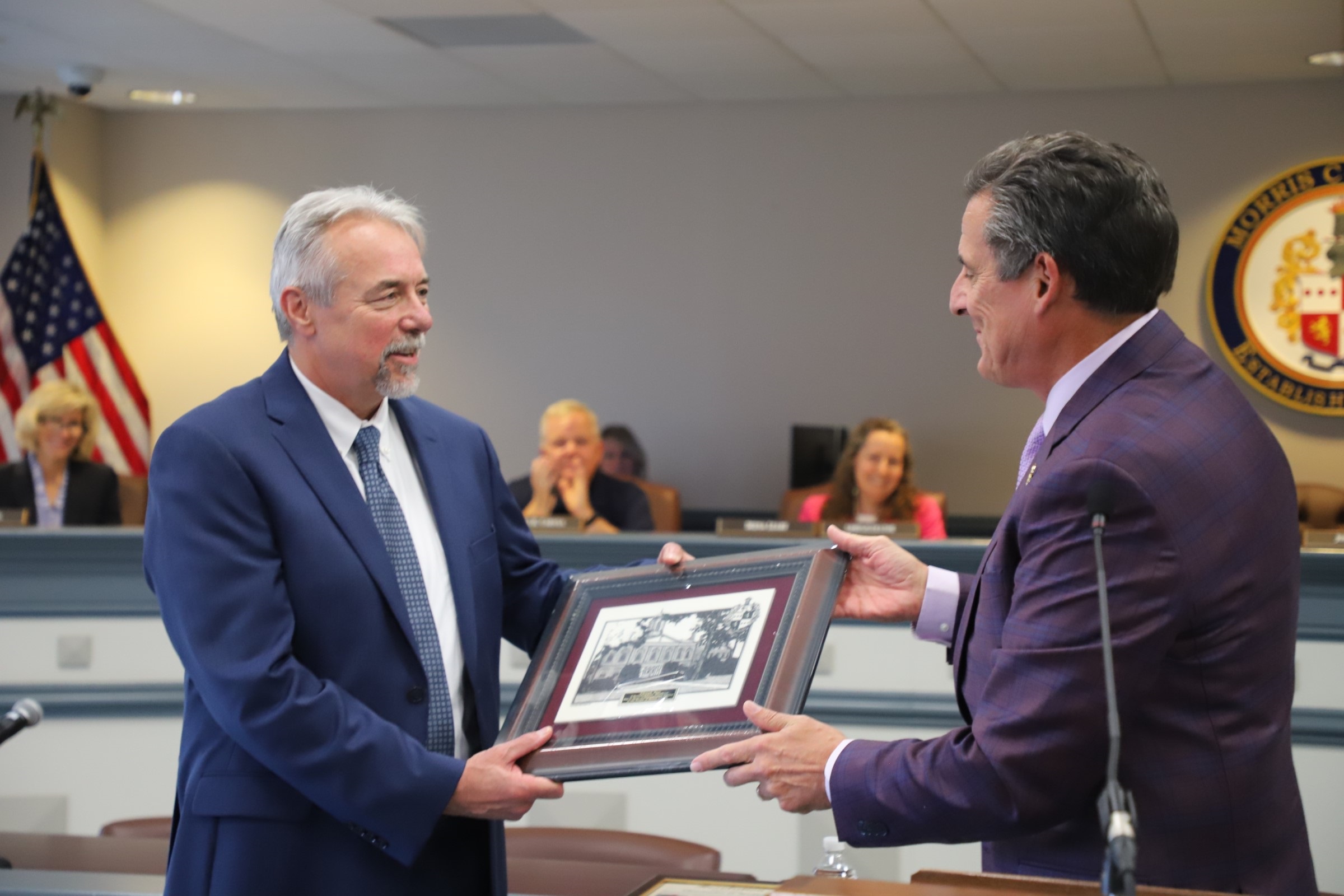 The Commissioners presented Superintendent Walker an official resolution of honor denoting his achievements, along with an etching of the Morris County Courthouse. The etching bears a placard that simply reads: “Thank You, Christopher A. Walker For 25 Years of Distinguished Service To the People of Morris County.”