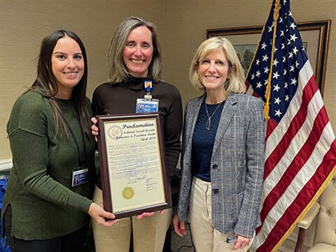 The Morris County Board of County Commissioners declared April 2024 National Sexual Assault Awareness and Prevention Month at a meeting last week, when Commissioners Director Christine Myers presented a framed proclamation to members of Atlantic Health System’s Behavioral Health Team for their work to provide outreach and support to victims through the Morris County Sexual Assault Center.