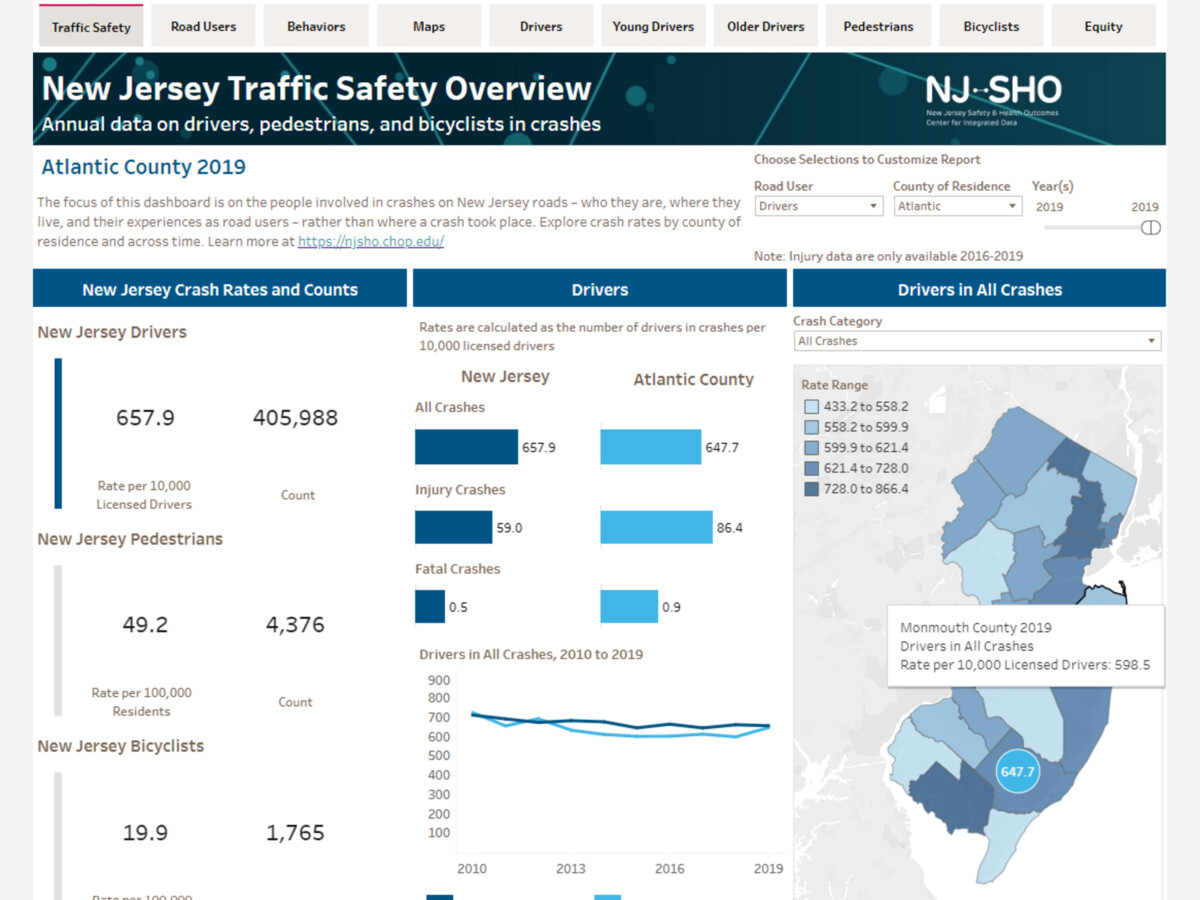 The Children’s Hospital of Philadelphia (CHOP) and the New Jersey Division of Highway Traffic Safety (HTS) are excited to announce the launch of a groundbreaking website, njsho.chop.edu. This new platform features an interactive data dashboard designed to enhance traffic safety by providing comprehensive, real-time data visualization and tracking across New Jersey.