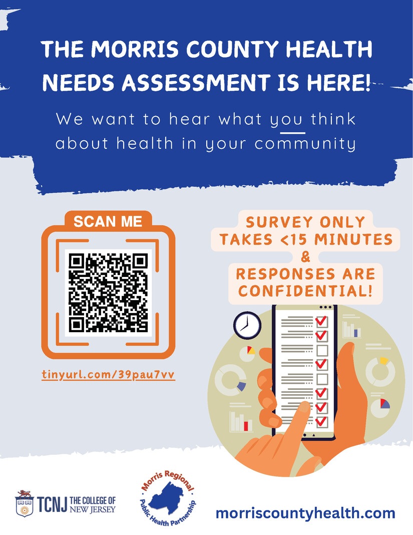 The Morris Regional Public Health Partnership (MRPHP) and The College of New Jersey (TCNJ) has created a Morris County Community Health Assessment and Community Health Improvement Plan. The Morris County Health Assessment is here and we want to hear what YOU think about health in your community!