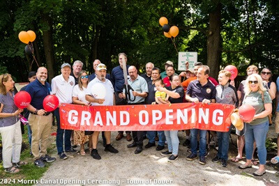 The Morris Canal Towpath trail in Dover.Commissioners Krickus and Tayfun Selen recently attended a ribbon-cutting ceremony for a community project completed by Dover College Promise students: the Morris Canal Towpath in Dover. Students contributed to the design of the nearly one-mile recreational trail in Dover’s Water Works Park, now part of the Morris Canal Greenway, a pedestrian pathway aiming to retrace the historical Morris Canal route from the Hudson River to the Delaware River.