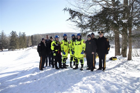 (l-r) Undersheriff Richard A. Rose, Undersheriff Mark S. Spitzer, Sgt. James Rae of the Morris County Sheriff’s ESU, Cpl. Ivan Bajceski of the Morris County’s Sheriff’s ESU, a Morris Twp. firefighter, Ed Duffy of the Morris Twp. FD, Lt. Brendan McCloskey of the Morris Twp. FD, Det. Lt. Robert Kranz of the Morris County Sheriff’s Patrol Division, Chief Mike Dunn of Morris Twp. FD and Sheriff James Gannon."Morris County is a wonderful place where approximately 515,000 people live, work, raise families, and have fun. We're committed to ensuring that residents can continue to have fun safely through training like this. I’m grateful to the county government for their support, and I also want to thank all the police departments, fire departments, and emergency squads participating in this training. We are ready 24/7 to provide vital services to the residents of Morris County,” said Sheriff Gannon.