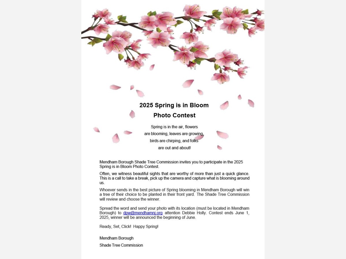 The Mendham Borough Shade Tree Commission invites you to participate in the 2025 Spring is in Bloom Photo Contest!