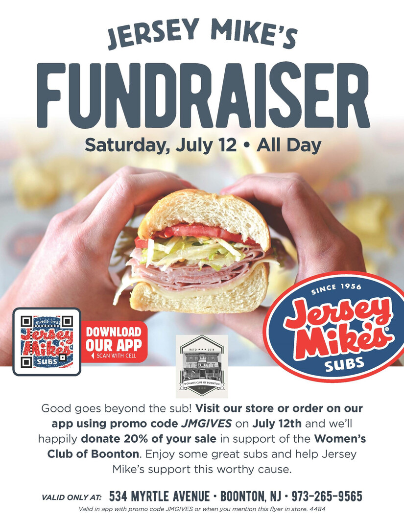 Hand this flyer in at the store or use code JMGIVES on the app and 20% of all sales will go to support the Women's Club of Boonton. Valid only at 534 Myrtle Ave, Boonton, NJ.