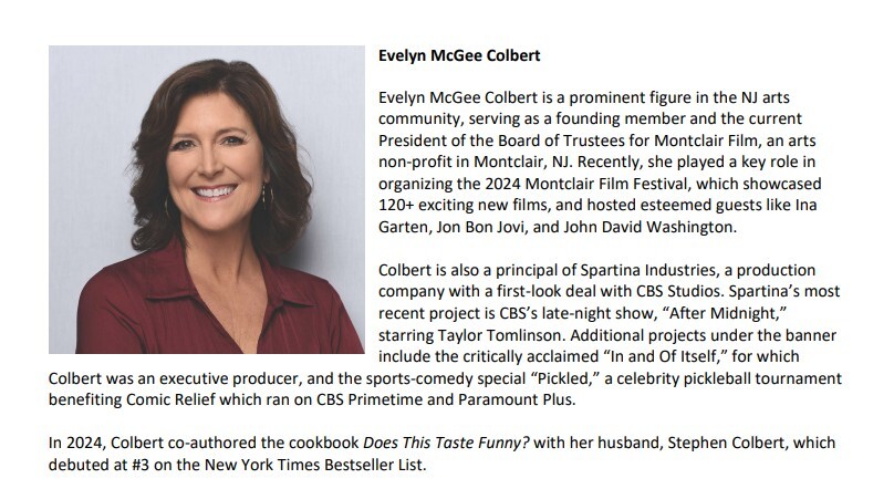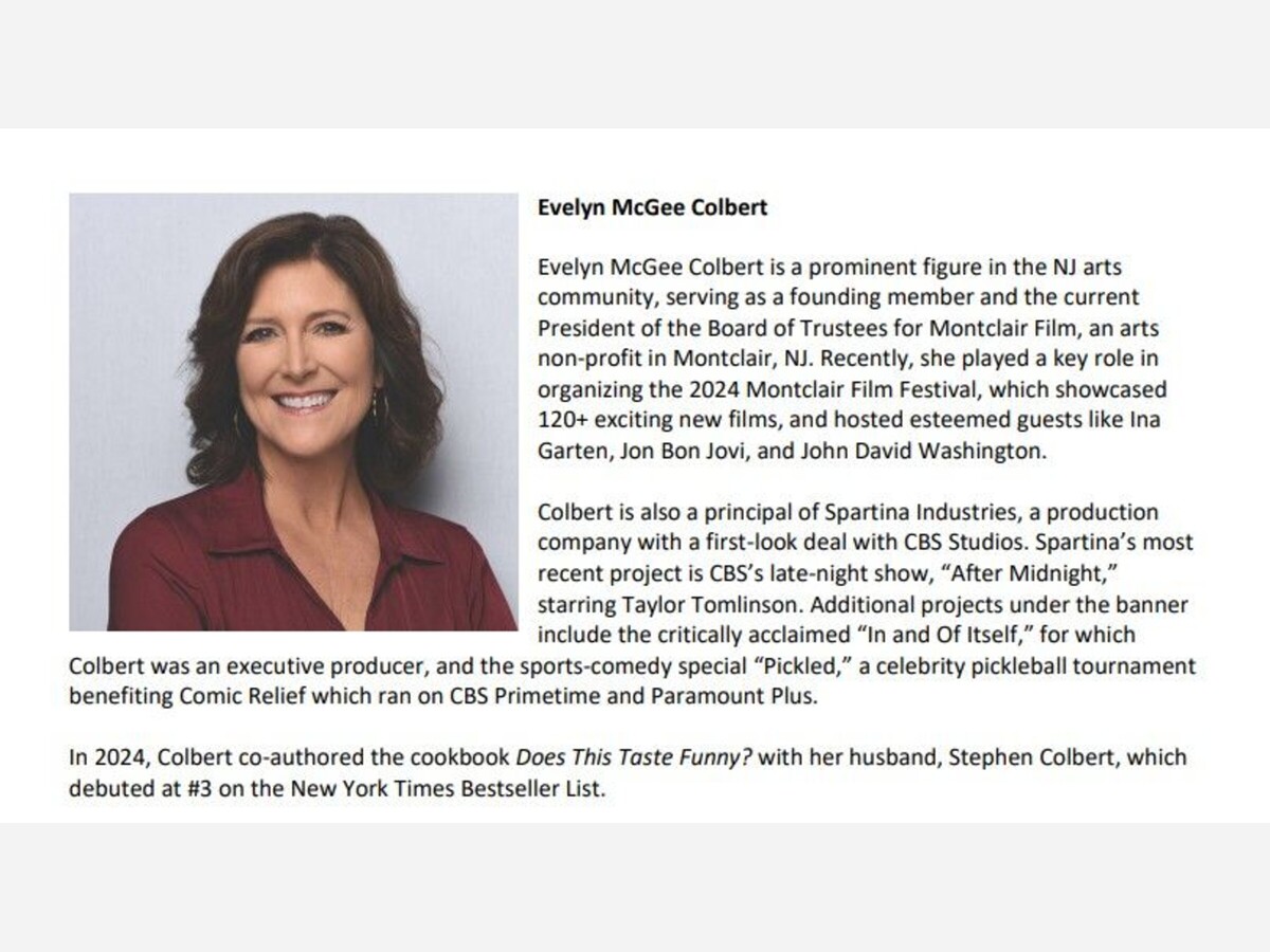 Additionally, Evie McGee Colbert, wife of Stephen Colbert, was sworn in as the newest member of the Council. McGee Colbert previously co-chaired the Governor’s NJ Arts and Culture Recovery Working Group during the pandemic. Her appointment was welcomed by Council Chair Felicia Grant, who praised her leadership and longstanding advocacy for the arts.