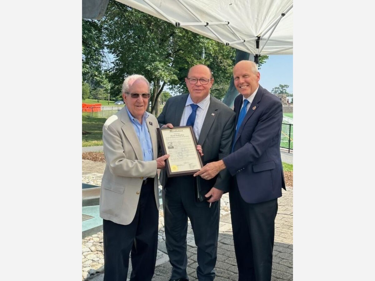 From left, Meyer Rosenthal, Mayor James Barberio and Commissioner John Krickus.Morris County Commissioner John Krickus joined Mayor James Barberio, local clergy, representatives of the Swedish Consulate, and members of the Jewish and Swedish American communities at Smith Field Park in Parsippany yesterday to honor the memory of Raoul Wallenberg, the Swedish diplomat whose heroic actions during the Holocaust saved tens of thousands of Hungarian Jews.