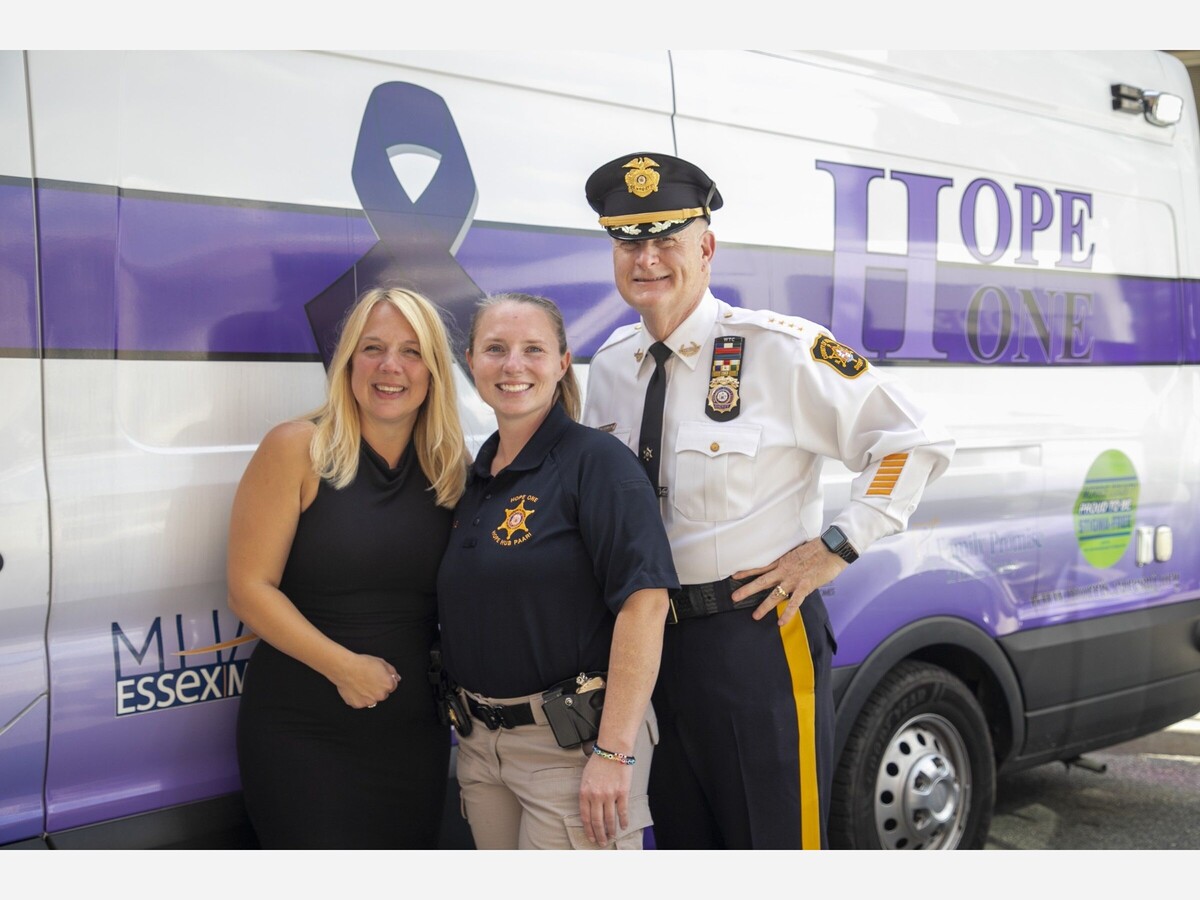 Cpl. Erica Valvano, Sheriff’s Officer Chelsea Whiting of the Community Outreach and Planning Section and Sheriff James Gannon.Her most notable achievement came on April 3, 2017, when she helped launch the Hope One mobile outreach vehicle, bringing addiction, recovery and mental health services directly into the community. Under her leadership, Hope One grew into a nationally recognized initiative, earning the 2019 International Association of Chiefs of Police Michael Shanahan Award for Public/Private Cooperation. That same year, she received the Community Impact Award from New Jersey Women in Law Enforcement.