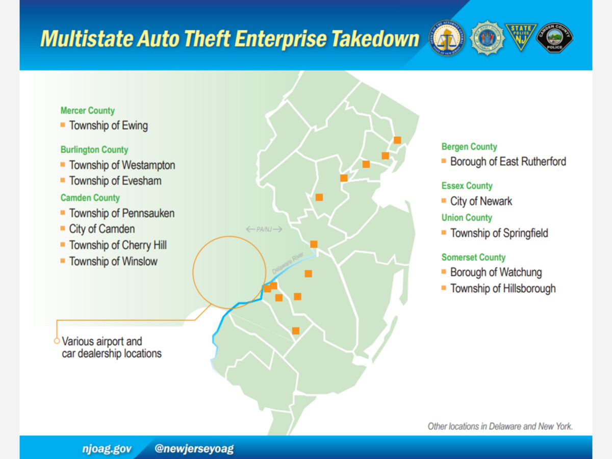 Authorities allege Camden-based enterprise targeted high-value vehicles across New Jersey and neighboring states, using violence and fraud to sustain operations